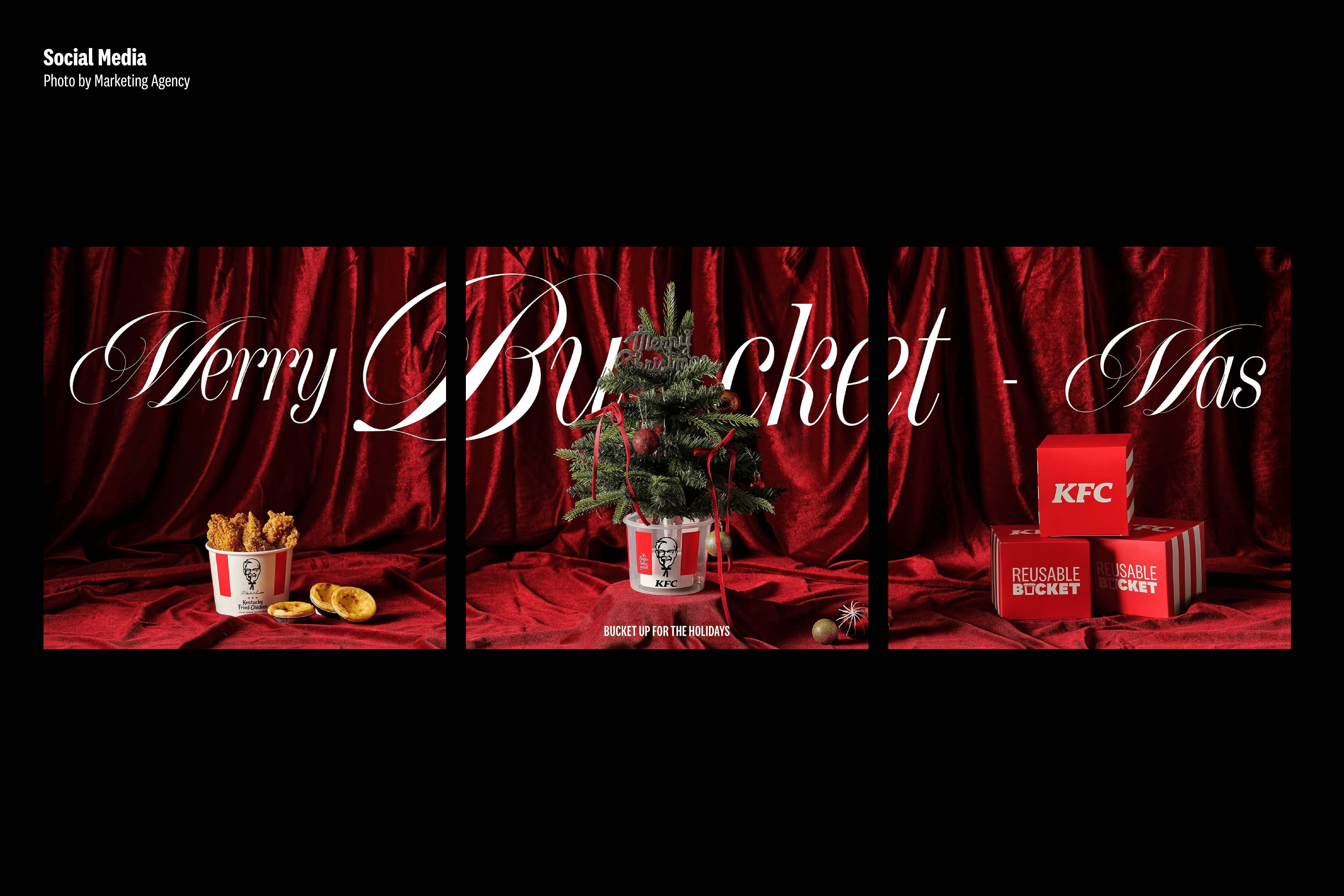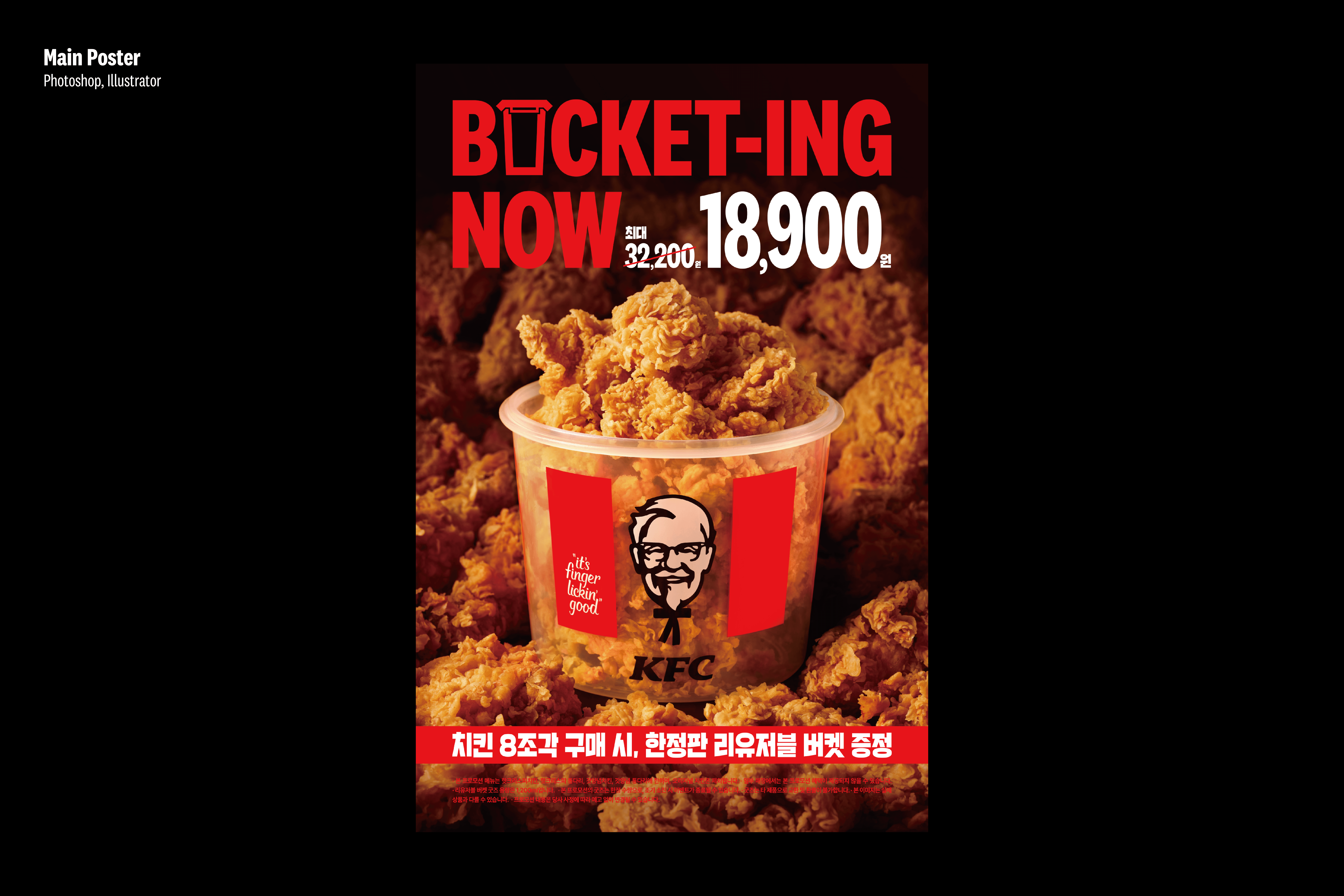 KFC's year-end campaign needed to turn a disposable bucket into something people actually want to keep. I translated the BUCKET-ING concept into a visual identity that made fast-food merchandise feel like a premium lifestyle object, selling out ahead of schedule.