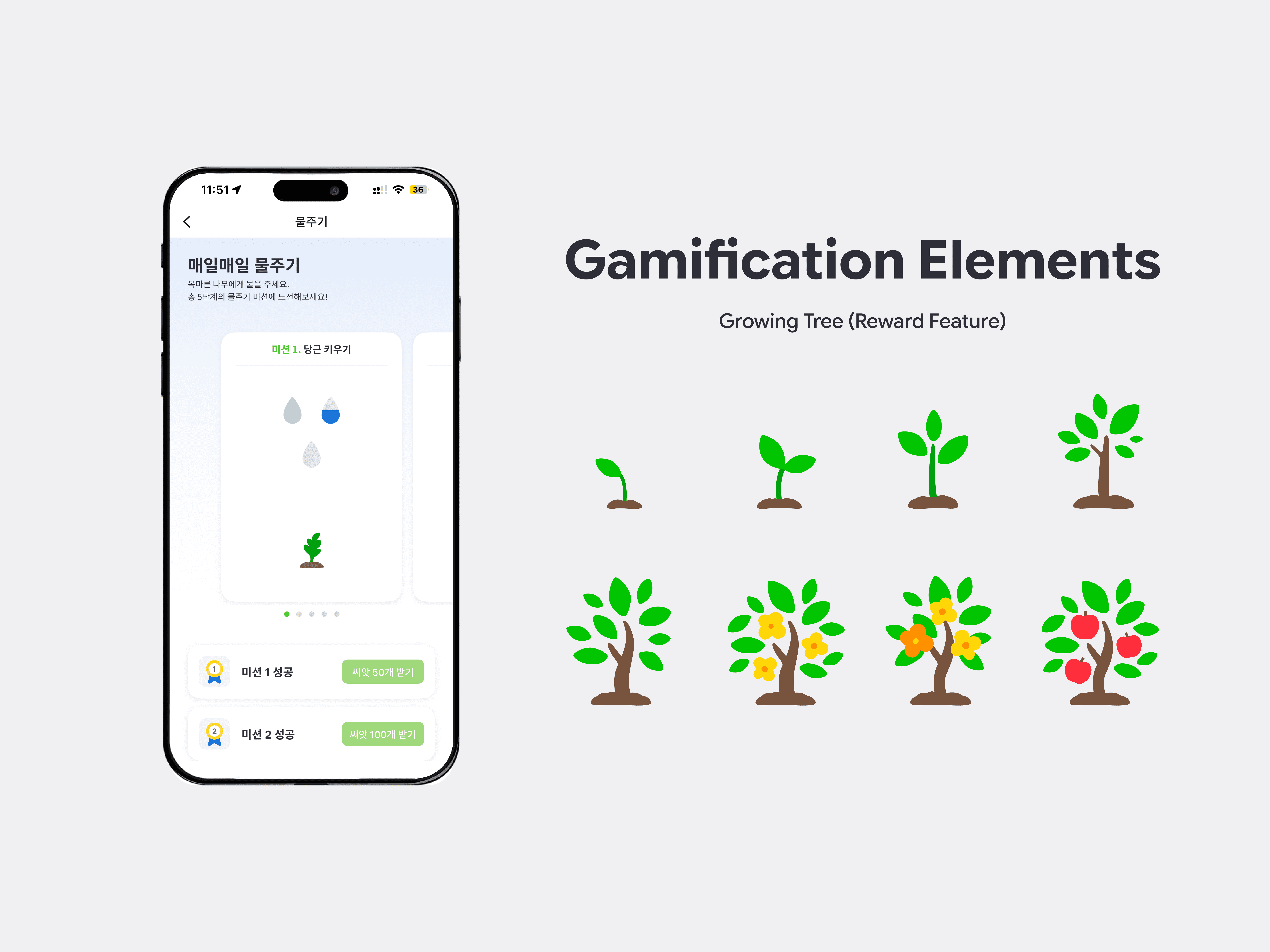 I gamified the user experience to solve retention challenges with two key features. First, I designed a 'Tree Growing' interface where daily check-ins visualize progress. Second, for the referral system, I created a friendly 'Earth' character to make inviting friends feel like a playful mission. I unified these elements with a bold, minimal color system. To ensure efficient motion performance, I proposed adopting Lottie files, which was a first for our team. Although the technology was new to me as well, I rapidly upskilled myself to produce and implement these animations directly, successfully transforming mundane data into delightful daily achievements.